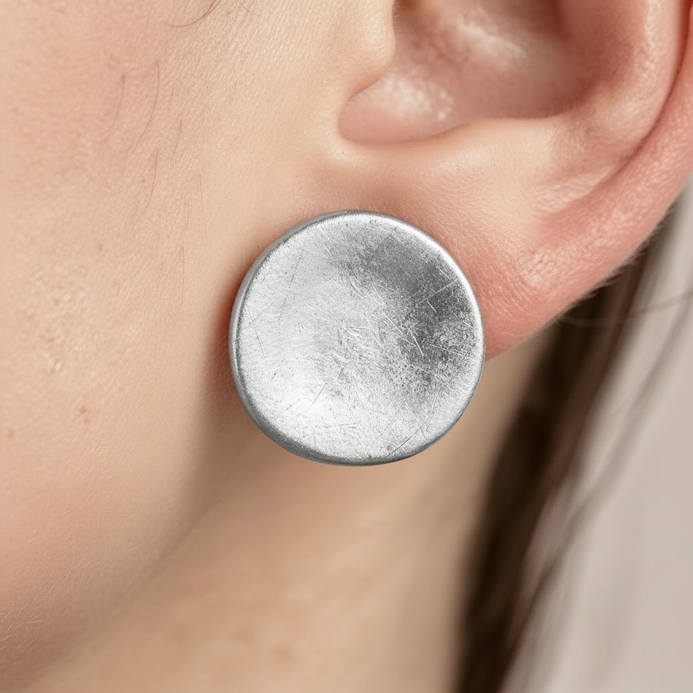 Σκουλαρίκια Ασημένια Iliria με ανάγλυφη υφή και στρογγυλό σχήμα – statement πινελιά σε κάθε look.