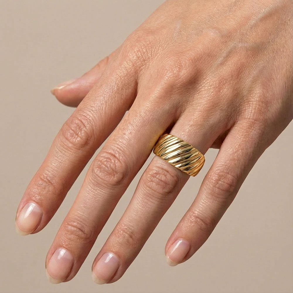 Δαχτυλίδι Χρυσό Ring Beam G από ανοξείδωτο ατσάλι επιχρυσωμένο με 14K χρυσό – statement piece με δυναμικό χαρακτήρα και ανάγλυφη υφή.