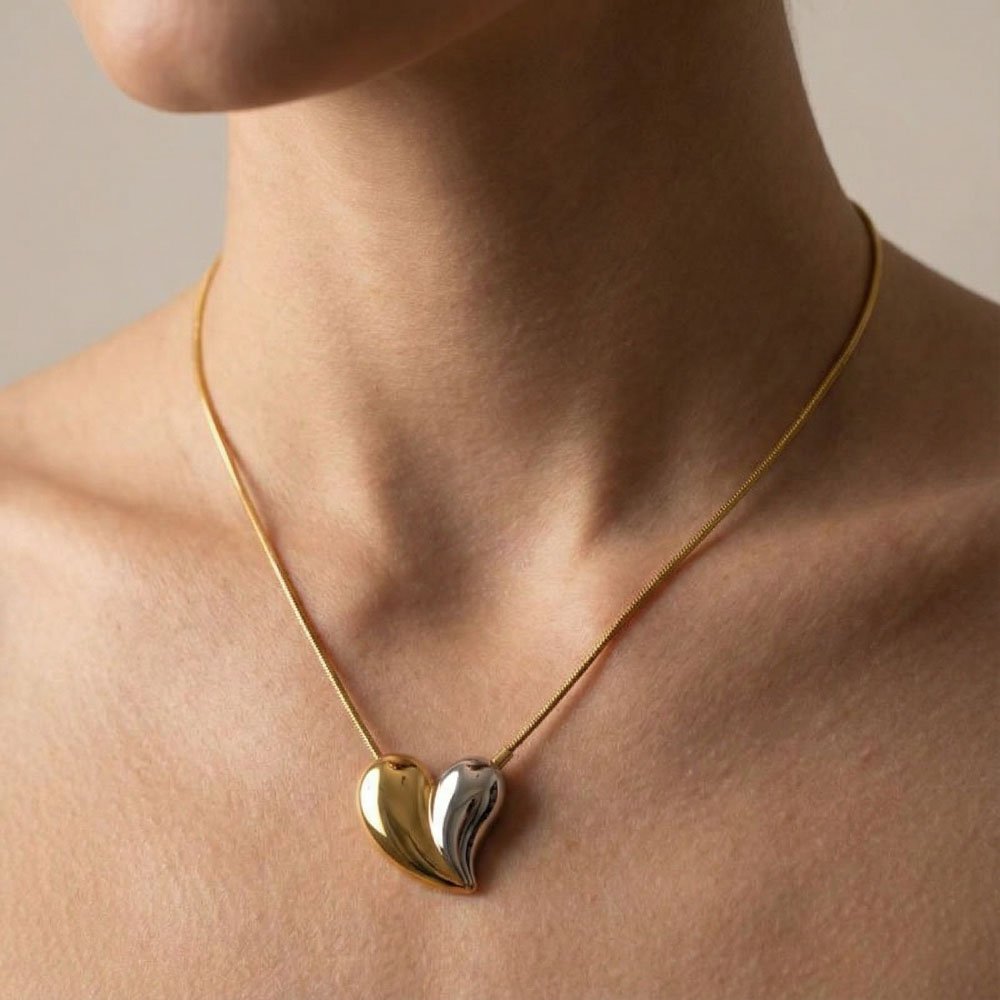 Κολιέ χρυσό-ασημένιο Ball Heart από ανοξείδωτο ατσάλι, με συνδυασμό χρυσών και ασημί μπίλιων και διακριτικό στοιχείο καρδιάς — ιδανικό για layering με άλλα κολιέ ή για να φορεθεί μόνο του με basic tops για playful, everyday look.