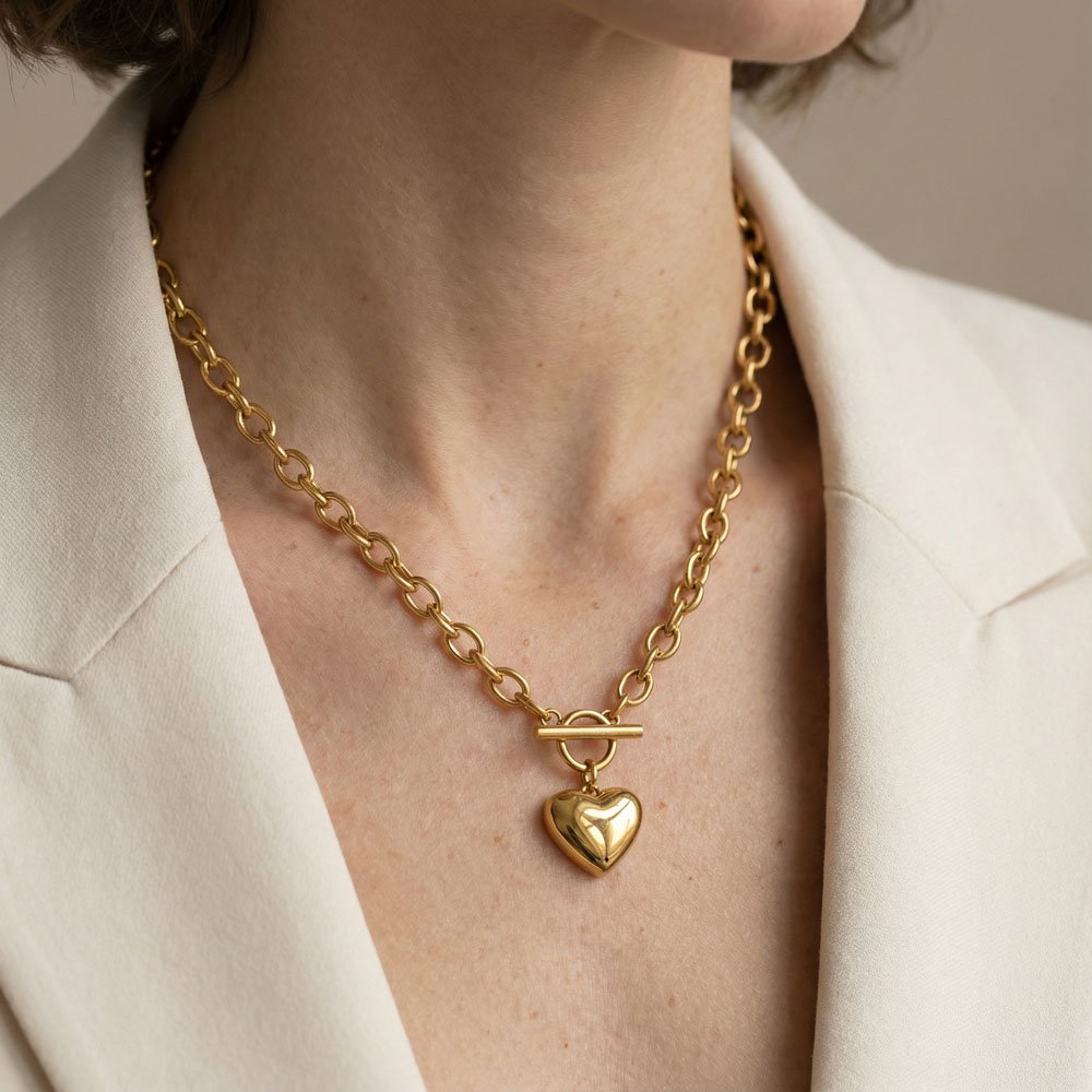Κολιέ Χρυσό Be Love G από ανοξείδωτο ατσάλι επιχρυσωμένο με 14K – chunky αλυσίδα με κρεμαστό charm καρδιά για ρομαντική και δυναμική κομψότητα.