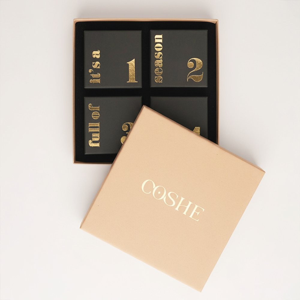 Το Secret 4 Jewels Advent Calendar της COSHE κρύβει τέσσερα μοναδικά κοσμήματα, επιλεγμένα για να συνοδεύουν τις στιγμές σου με αυτοπεποίθηση, στυλ και λάμψη. Κάθε κόσμημα μια έκπληξη. Κάθε κόσμημα, ένα statement. Σχεδιασμένο για όσες αγαπούν τη λεπτομέρεια, τη δύναμη της έκπληξης και το συναίσθημα που δημιουργεί ένα κόσμημα όταν είναι για σένα.