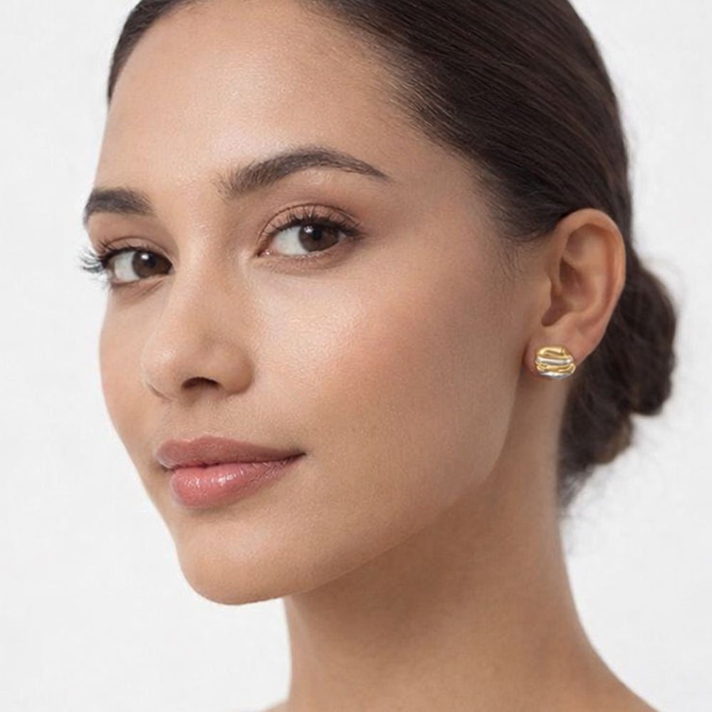 Τα χρυσά-ασημένια σκουλαρίκια Alma της Coshe είναι ένα τολμηρό κόσμημα που ισορροπεί ανάμεσα στην τέχνη και τη μόδα. Με ανάγλυφη, fluid επιφάνεια που συνδυάζει τις δύο αποχρώσεις, χρυσό και ασημί, δημιουργούν ένα κομμάτι που ξεχωρίζει για τον ιδιαίτερο χαρακτήρα του.