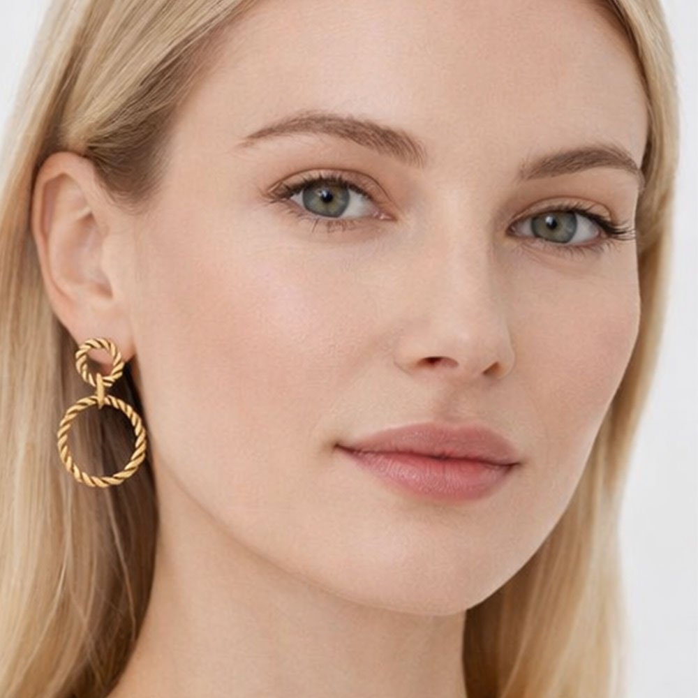 Τα χρυσά σκουλαρίκια Elysia της Coshe είναι σκουλαρίκια που μαγνητίζουν. Με μοναδικό, ρευστό σχεδιασμό, αποπνέουν κομψότητα και ήρεμη δύναμη. Κατασκευασμένα από ανοξείδωτο ατσάλι και επιχρυσωμένα με 14Κ, είναι ελαφριά, υποαλλεργικά και ιδανικά για να φοριούνται από το πρωί μέχρι το βράδυ. Ταιριάζουν υπέροχα με sleek bun, φυσικό μακιγιάζ και minimal εμφανίσεις — για γυναίκες που αγαπούν τη διακριτική πολυτέλεια.