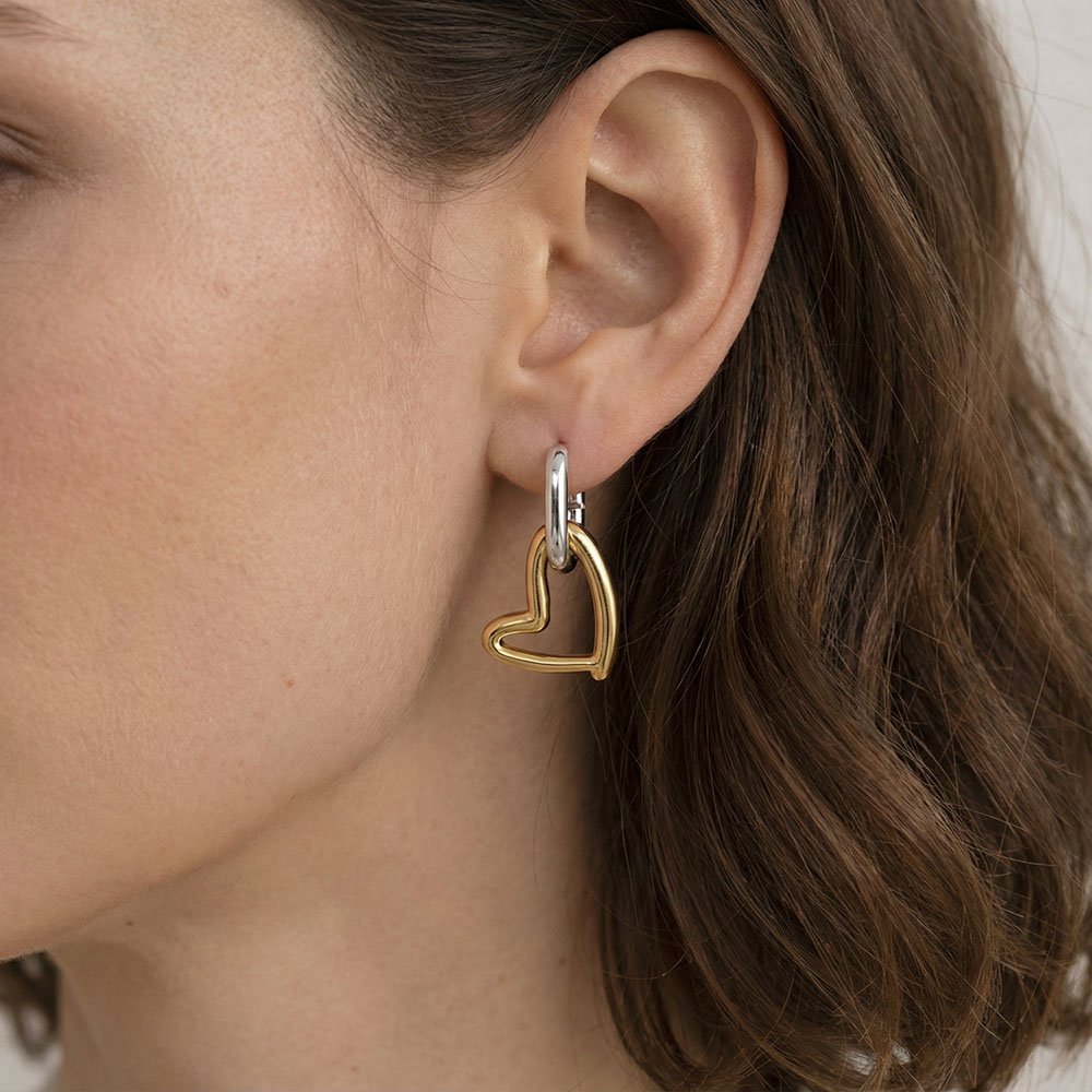 Σκουλαρίκια χρυσά-ασημένια Golden Heartbeat σε σχήμα καρδιάς — εντυπωσιακά, κρεμαστά, ιδανικά για να εκφράσεις το προσωπικό σου στυλ με ρομαντική διάθεση.