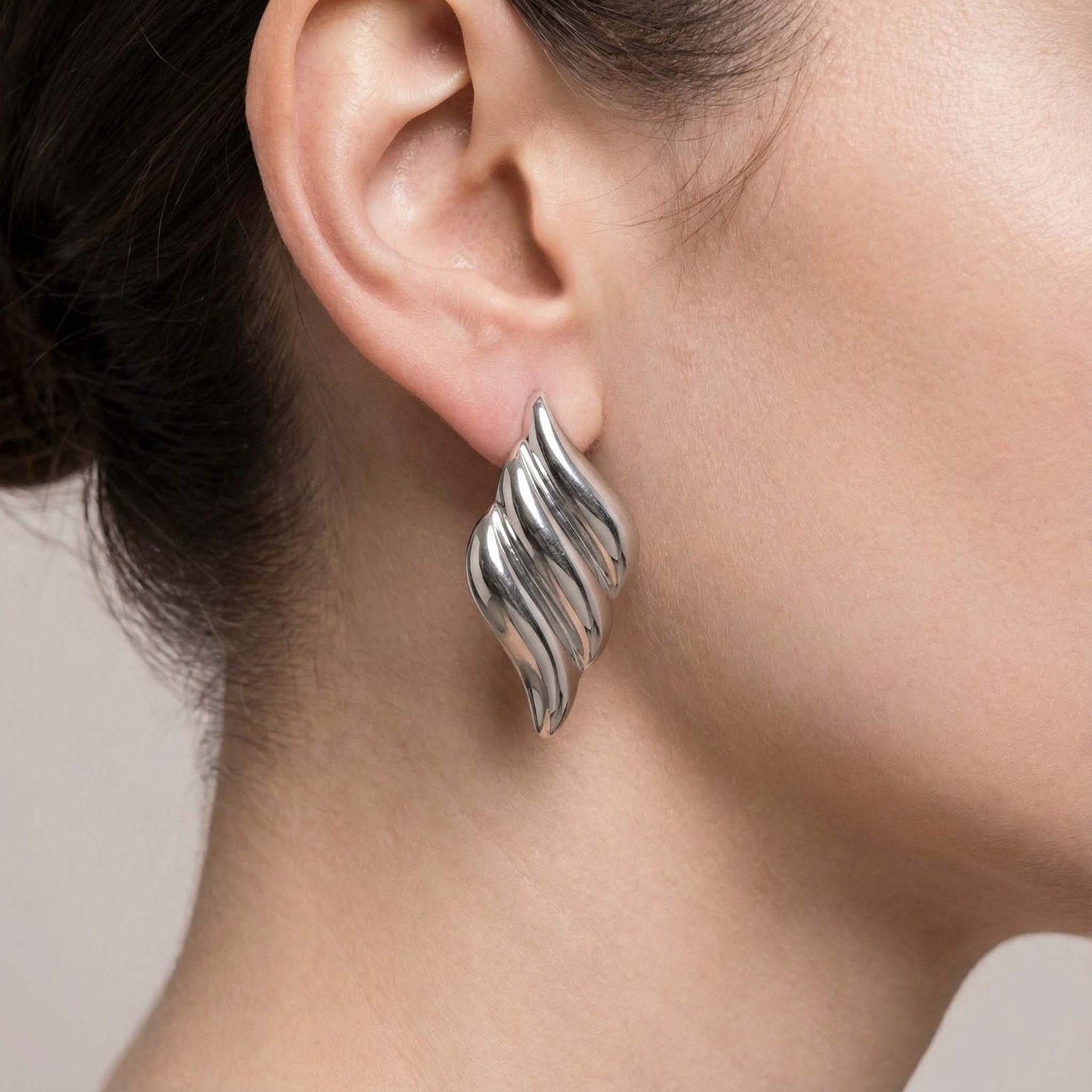 Ασημένια σκουλαρίκια Lolaos από ανοξείδωτο ατσάλι, λατρεμένα για το μοντέρνο σχέδιό τους — συνδυάζονται υπέροχα με casual looks ή pastel φορέματα για everyday chic στυλ.