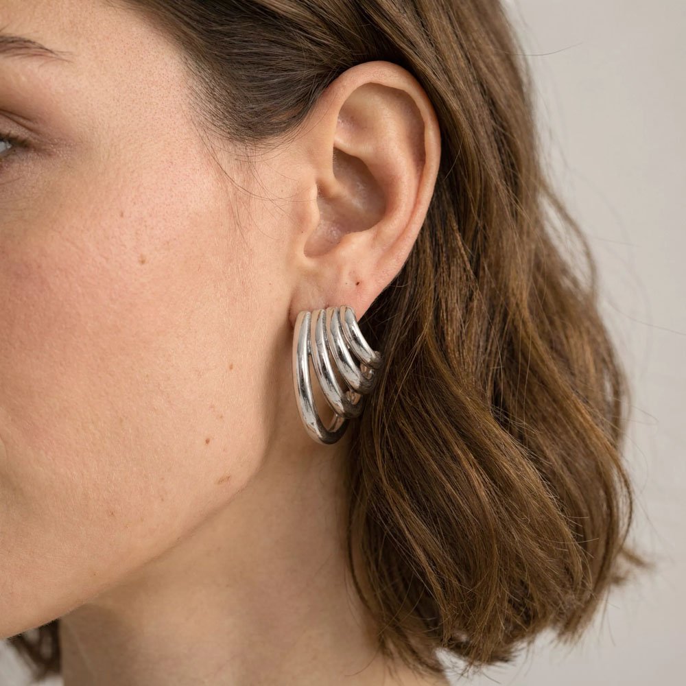 Ασημένια σκουλαρίκια Molly Silver από ανοξείδωτο ατσάλι – με γλυπτική φόρμα που αγκαλιάζει το αυτί, για κομψές εμφανίσεις με σύγχρονη αισθητική.
