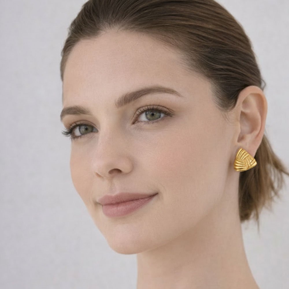 Τα Σκουλαρίκια Χρυσά Violetta της Coshe είναι η ιδανική επιλογή για όσες αγαπούν το εκφραστικό κόσμημα. Με bold τριγωνικό σχήμα και sculptural ανάγλυφη υφή, αποπνέουν ένταση και κομψότητα ταυτόχρονα. Η χρυσή τους απόχρωση, επιχρυσωμένη με 14Κ, φωτίζει το πρόσωπο και χαρίζει πολυτελές statement vibe σε κάθε outfit.