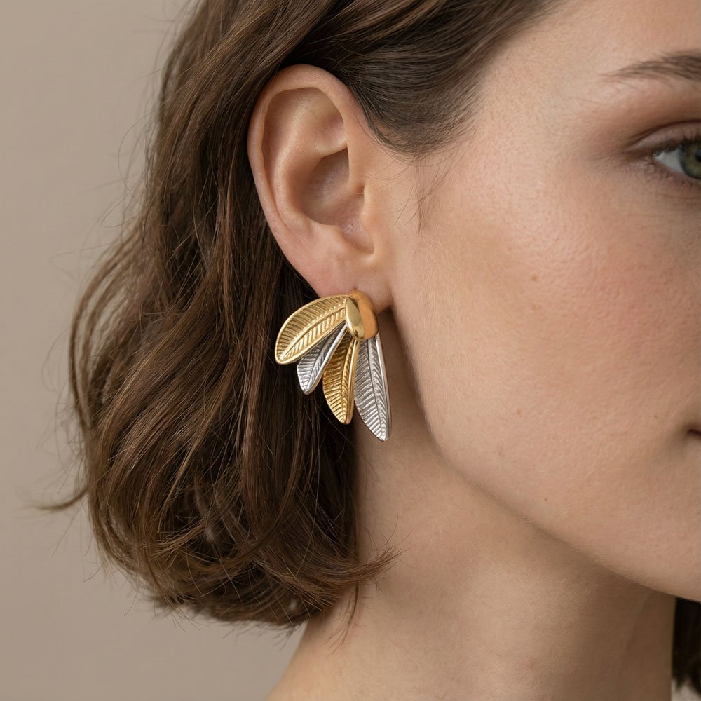 Σκουλαρίκια Χρυσά-Ασημένια Wisteria – εντυπωσιακό σχέδιο που θυμίζει φτερά, από ανοξείδωτο ατσάλι σε διχρωμία· μοναδικά και ιδιαίτερα για standout εμφανίσεις.
