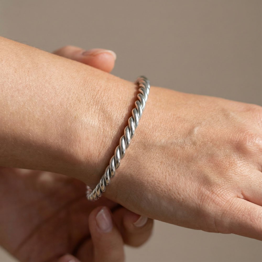 Βραχιόλι Ασημένιο Vira από ανοξείδωτο ατσάλι – minimal cuff με twisted design για διαχρονική κομψότητα και καθημερινή λάμψη.